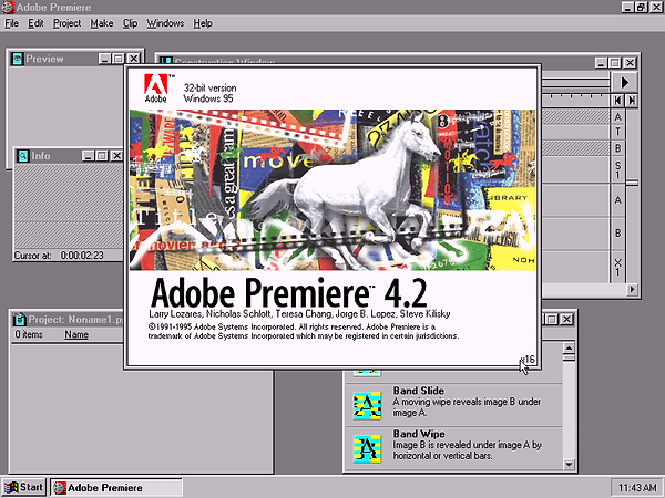 En nuestros inicios, solamente contabamos con una computadora Pentium II 233mhz con Adobe Premiere 4.2, la cual solamente nos permitia editar solamente 5 minutos y luego se grababa en una cinta VHS nueva de 5 minutos editados para terminar todo el material editado.